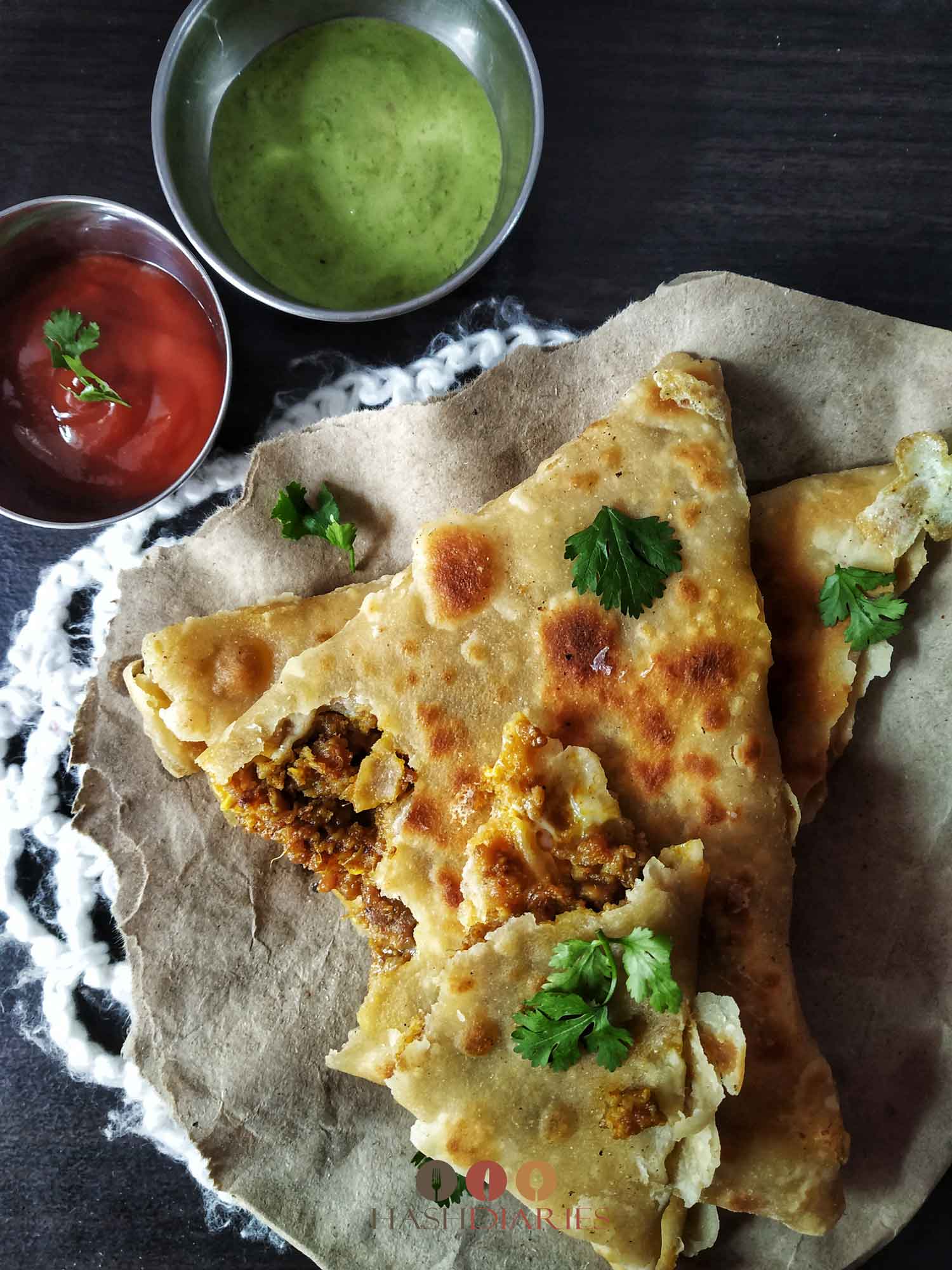 This Mughlai parantha can be prepped ahead. For instance, you can knead the dough and refrigerate it in an airtight container. Before making the paranthas, simple defrost the dough or allow it to sit on your countertop for an hour or so.