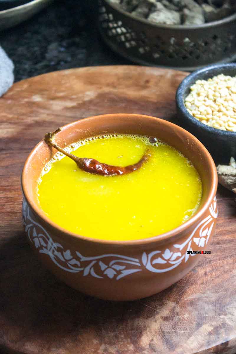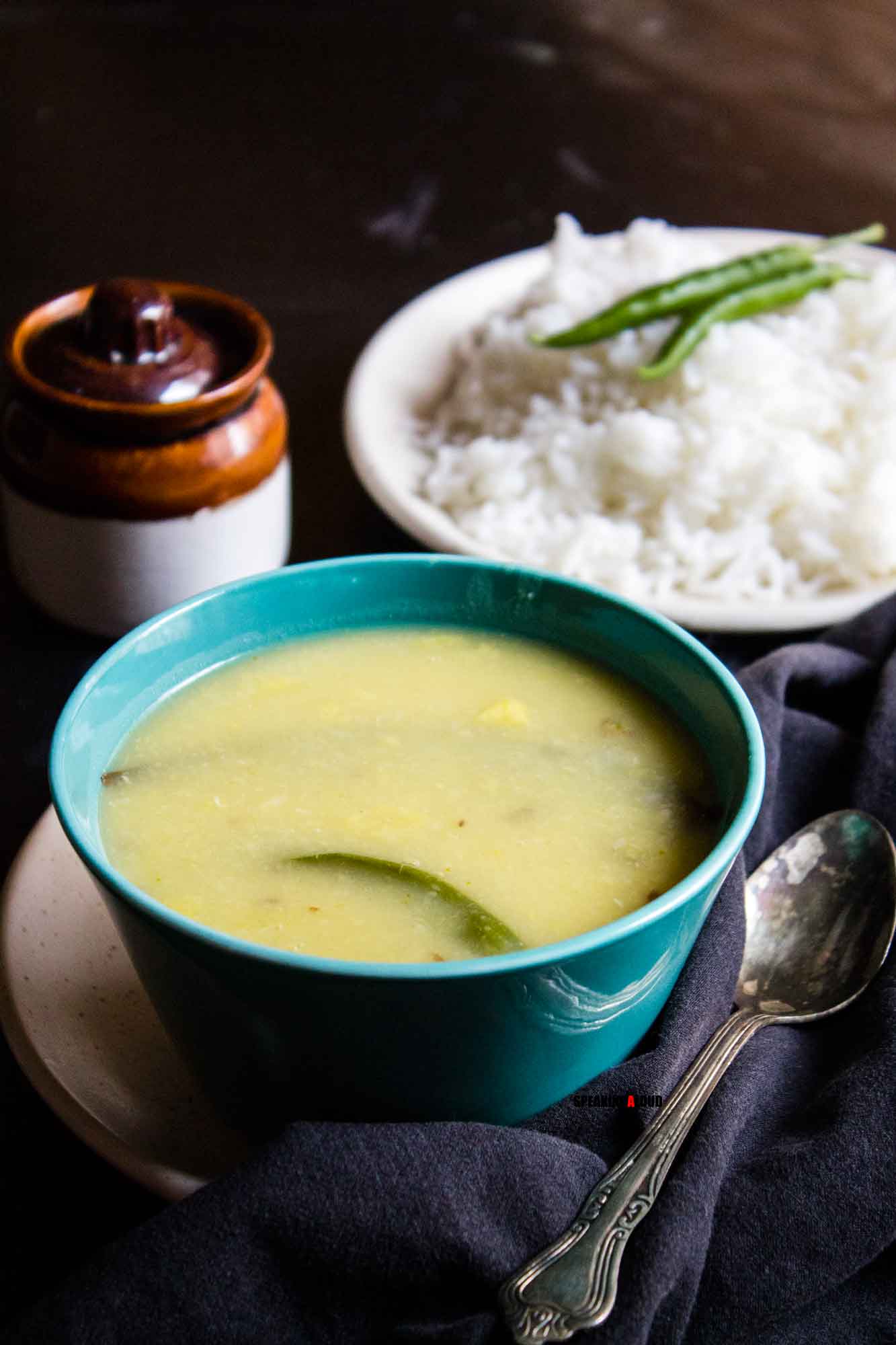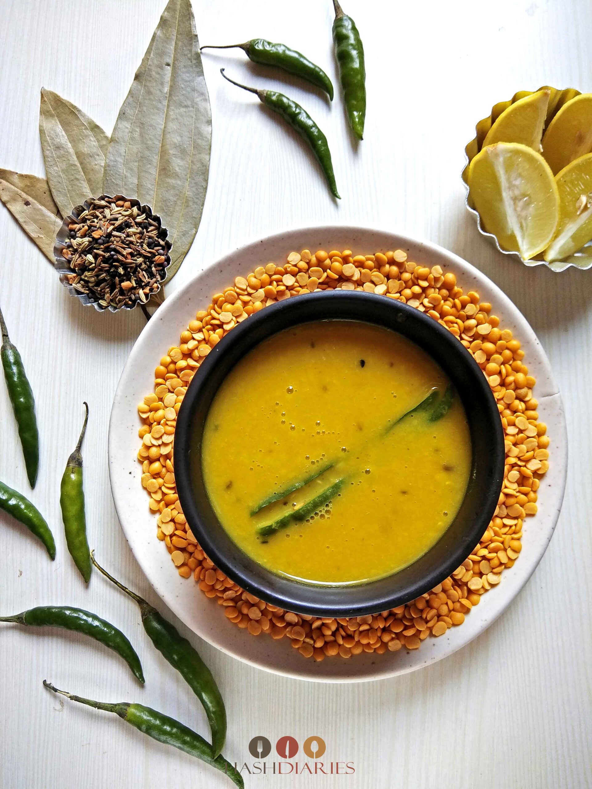 I know many who swear by the Masoor Dal or red lentil recipes of Toker Dal, but few prefer other varieties of lentils as well. Purists would always settle for ‘Motor Dal‘, i.e., the split pea lentil, while some would stick to Arhar Dal or Toor Daal or split Pigeon Pea Lentil for a Toker Dal recipe.