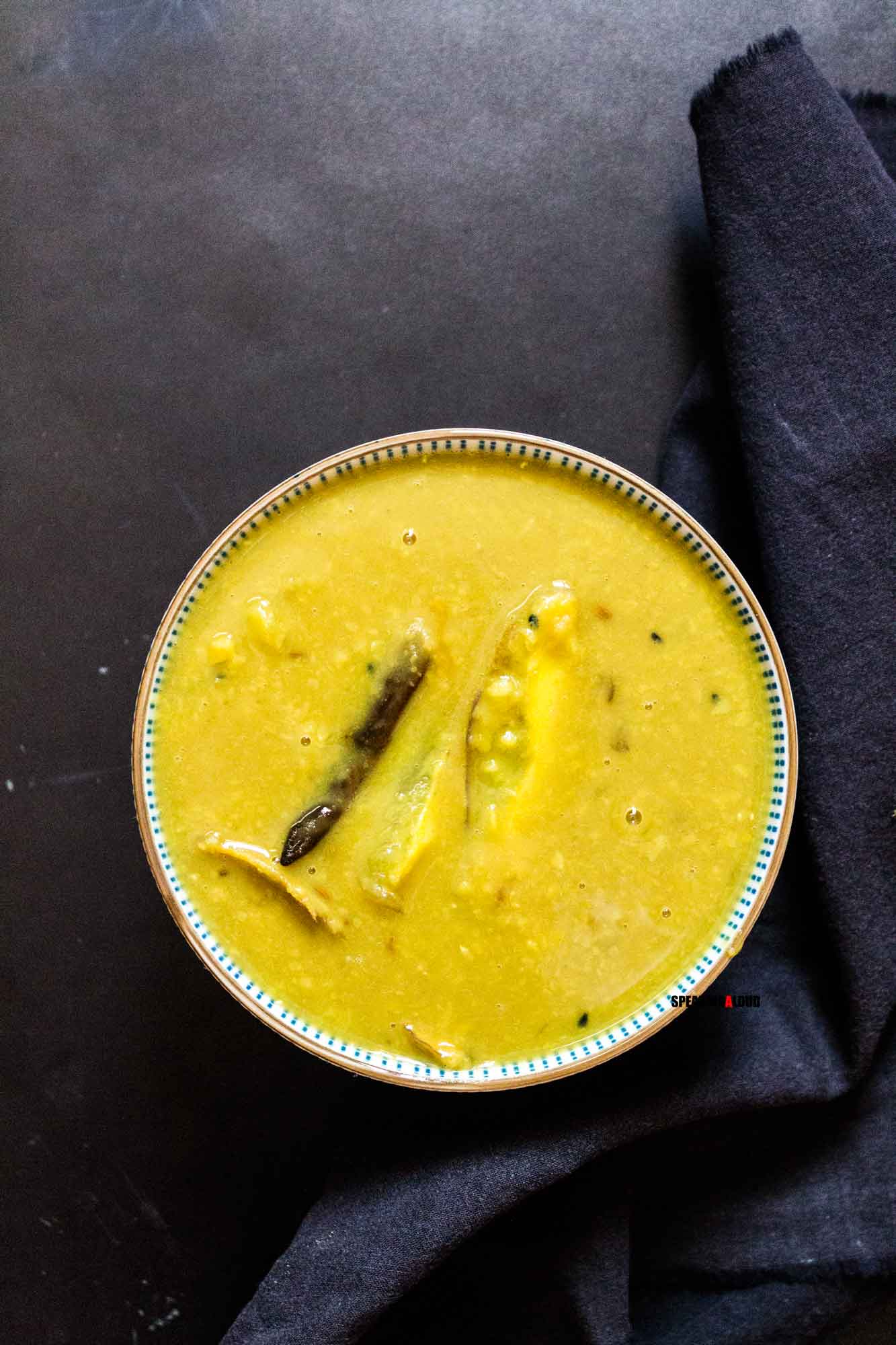 The nomenclature here needs a little bit of explanation. ‘Tok‘ means sour in Bangla; hence, Toker Daal means sour dal. The sour taste essentially comes from the unripened, tangy green mango. Among the various lentil recipes, this green mango recipe is a staple in every Bengali household during the summer months in India.