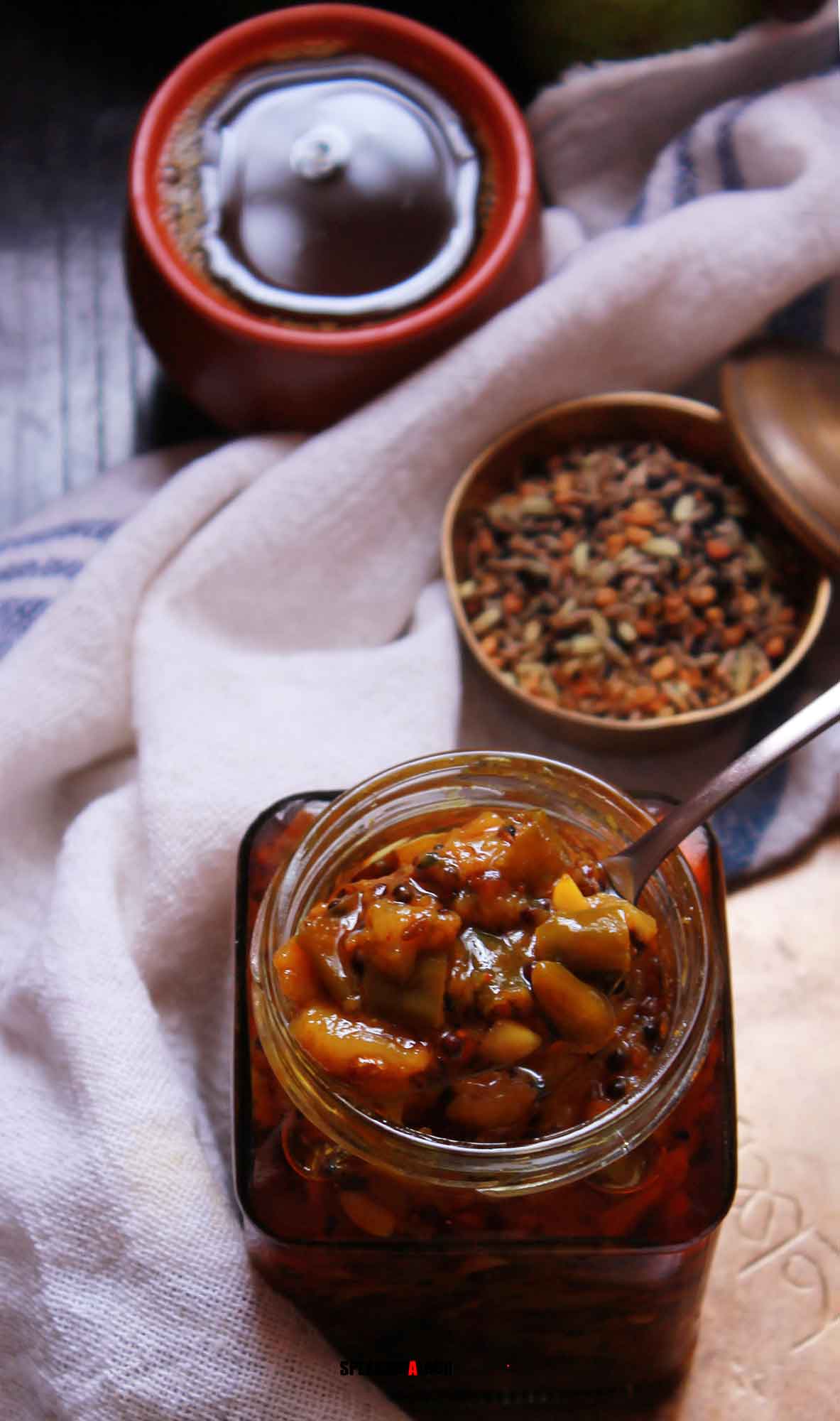 - Let it simmer for 3-4 minutes, till the mango pieces become soft and tender.
