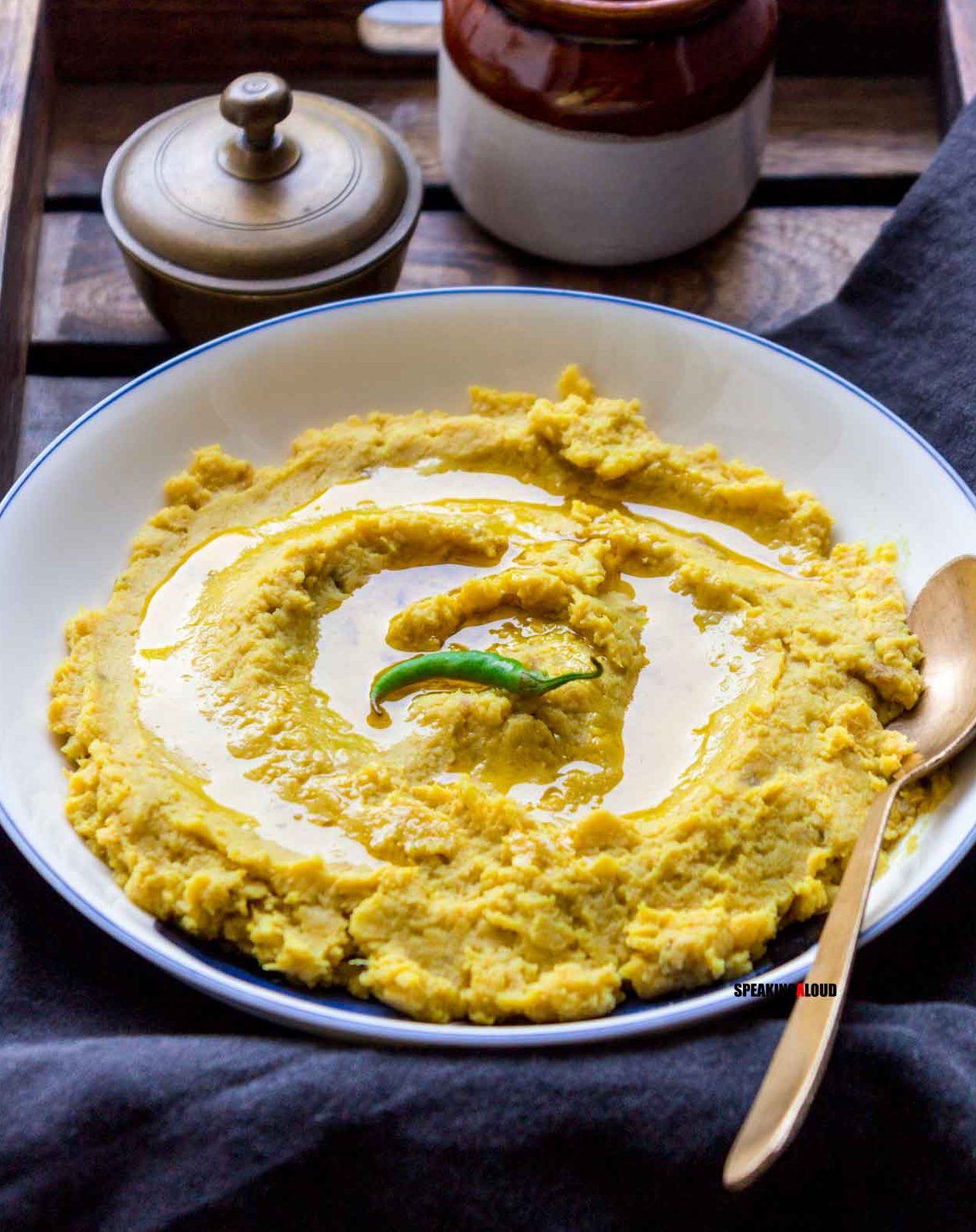 Anything mashed and served as the first side dish to the rice meal for lunch is generally known as ‘bhaate’. Interestingly, the term bhaate means ‘in the rice’. That doesn’t sound like any mash-up, right? This term has its origin in the practice of preparing the veggies before they get mashed up.